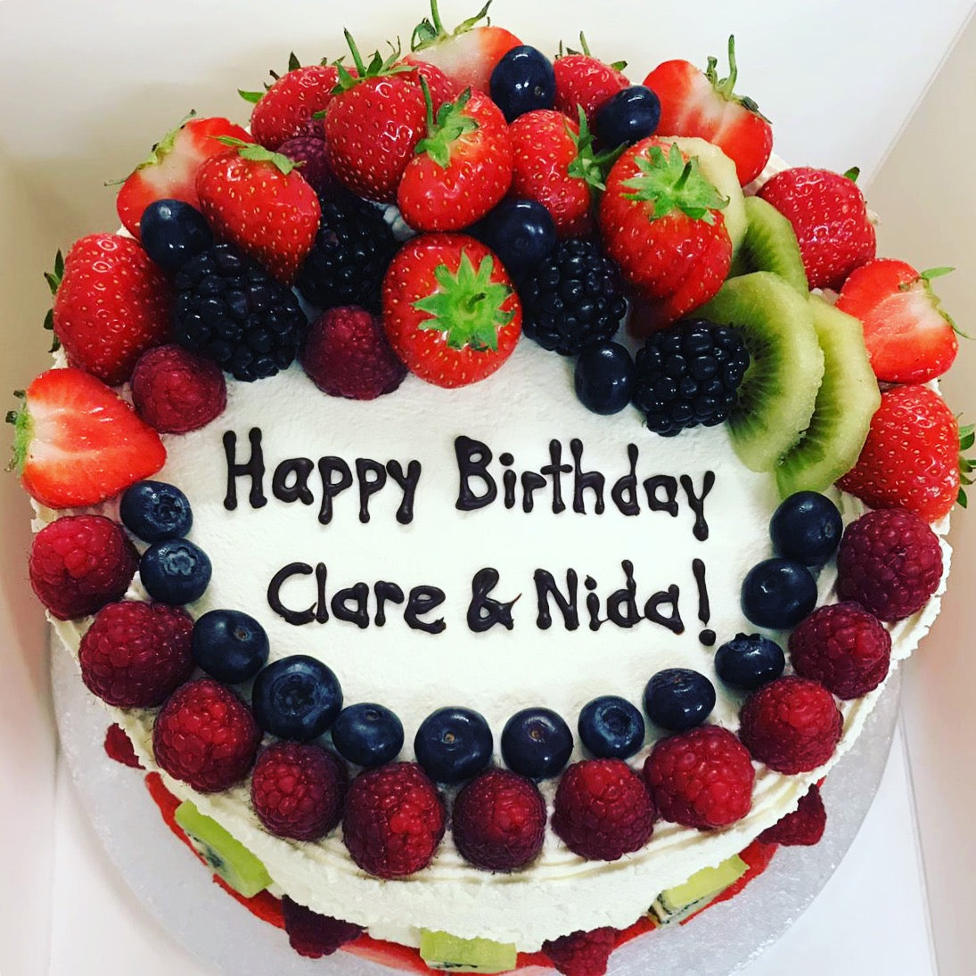 If you would like to mark your celebration with a light and fluffy cake, why not try our Chiffon Celebration Cake? We can make these cakes either with a buttercream frosting, or, with fresh fruits and fresh cream. If you would like to add a message please let us know.